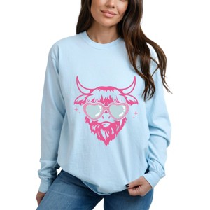 Cow Heart Glasses Glitter - Women's Garment Dyed Long Sleeve Graphic T-Shirt - 1 of 4