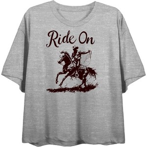 Cowboy "Ride On" Women's Crew Neck Short Sleeve Top - 1 of 3