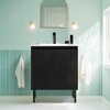 COWLOWN Black Modern Freestanding Bathroom Vanity with Ceramic Sink, 3D Carved Panel Design, Real Wood Grain Look, Spacious Storage