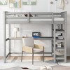 - The elevated sleeping area creates valuable floor space for other bedroom activities while the dedicated workstation promotes focused study time. Multiple shelves provide organized storage for books, supplies, and personal items keeping the area tidy and efficient.