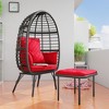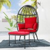 COWLOWN Red Wicker Egg Lounge Chair Set with Ottoman, Cozy Rattan Basket Chair with Stand and Thick Cushions for Indoor Bedroom or Outdoor Patio Use