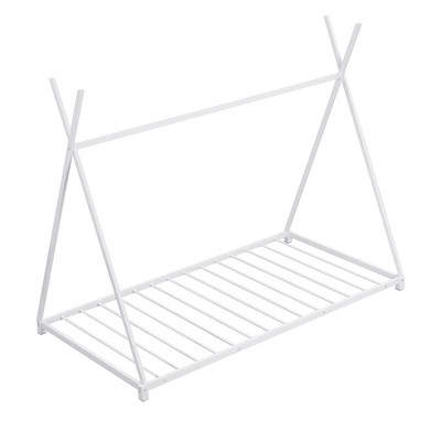 Inspire imagination with this twin-size floor bed featuring a charming house roof frame design. Crafted from premium pine wood, it creates a magical space for sleep, play, and reading. The natural wood aesthetic blends seamlessly with room decor while encouraging creativity and independence in your child¡¯s daily activities.