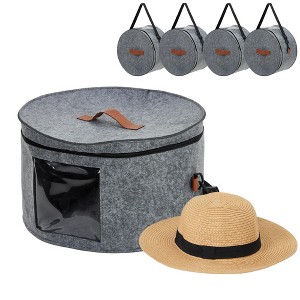 COZONY 4 Pack Hat Storage Box Set, Stackable Round Brim Organizer Foldable Dustproof Zippered Case