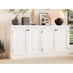Features:Spacious 4-Door Design: Four full-size doors provide ample storage with easy access to contentsModern Aesthetic: Clean lines and contemporary finish complement various decor stylesGenerous 62.99-Inch Width: Substantial size offers significant storage capacity while making a style statementVersatile Functionality: Perfect as buffet server, media console, or office storage solutionEasy Assembly: Designed for straightforward setup with all necessary hardware includedPackage Included:1 × Sideboard Cabinet Main Unit