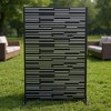 This freestanding metal privacy screen features rustproof steel construction with decorative louvered panels that provide wind resistance and partial visibility. Functioning as patio fence divider and climbing plant trellis, it creates versatile room separation. The durable design withstands weather elements while offering flexible privacy and decorative solutions.