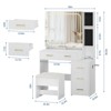 Elevate your beauty routine with this elegant makeup vanity set featuring a large lighted mirror and 3-color LED lighting modes with adjustable brightness. Designed for both style and function, it includes five spacious drawers for organized storage of cosmetics, jewelry, and accessories. The built-in power outlet provides convenient access for hair dryers, straighteners, or phone chargers. Complete with a cushioned stool and a sleek white finish, this vanity desk adds a modern, luxurious touch to any bedroom or dressing space.