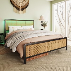 COZONY Rattan Bed Frame w/ Metal Platform Design, Headboard & Footboard