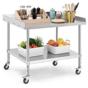 COZONY Stainless Steel Prep Table, Commercial Worktable with 4 Wheels, Height Adjustable Shelf, Heavy Duty for Kitchen, Food Truck, Catering