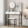 COZONY Vanity Desk with Mirror Lights 3 Colors, Makeup Table 2 Drawers Stool Po wer Ou tlet White Oak
