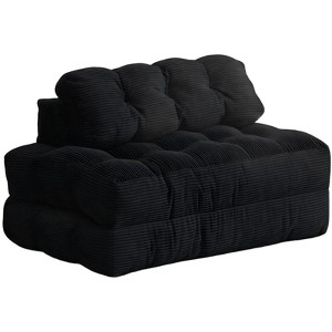 3-in-1 Folding Sofa Bed, Corduroy Floor Futon Couch, Shredded Foam Fold Out Bed for Living Room/Bedroom