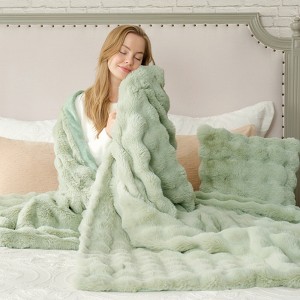 Cozy Bliss Bubble Faux Fur Throw Blankets, Plush Soft Thick Blanket for Sofa, Bedroom, Living Room