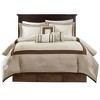 - This bedding set features color block and border design in brown and taupe hues for a sophisticated "hotel style look".