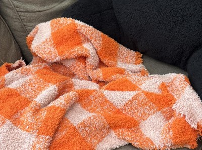 This blanket is so soft and cozy to curl up with! It's not too thick, but keeps you warm. The orange color is beautiful, too!