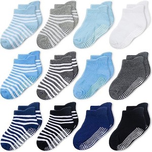 - VALUE PACK: Includes a versatile pack of non-slip ankle socks designed especially for baby boys. With a range of classic and versatile colors, these socks are perfect for pairing with his daily outfits. The grips provide extra stability for active little ones, while the cotton fabric keeps tiny feet cozy. A great value for infants ages 1–11 months, giving parents both comfort and peace of mind.