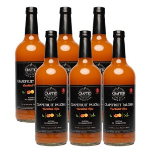 Crafted Cocktails Grapefruit Paloma Mix: 6 Pack Pink Grapefruit and Lime Juice with Organic Agave 35 Calories Per Serving, 8 Cocktails Per Bottle