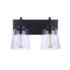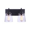 With a bold wide backplate, arched arms and tapered clear glass shades, the Elsa Vanity Collection offered in two finishes from a sconce up to a five light, delivers excellent illumination and a classic aesthetic that blends with any style. Wall Mount Damp Rated Requires 2 Medium Base 60 Watt Bulbs (Not Included) 1 Year Limited Warranty