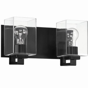 From the wide rectangular backplate to the custom square clear glass shades, the sharp design of the McClane collection was designed with your style in mind. Offered in two finishes, the McClane is available in a 1 light wall sconce up to a four light vanity. Tubular bulb(s) recommended. Bulbs not included. Wall Mount Damp Rated Requires 2 Medium Base 60 Watt Bulbs (Not Included) 1 Year Limited Warranty