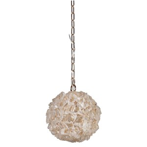 Roxx 1 Light Pendant w/ Chain in Gilded The spectacular, natural beauty of the Roxx lighting series will leave you awestruck. The natural rock crystal is bound around a gilded finished frame. The Roxx can be featured as a sublime standalone piece or clustered together for celestial ambiance. As one of the stand out pieces in our elite, Gallery Collection, the Roxx’s divine craftsmanship demands prominence in only the most significant spaces. Features: Product Type: Indoor Ceiling Lighting - Mini Pendant Finish: Gilded Crystal Color: Natural Bulb Included: No Bulb Type: Incandescent Material: Steel Warranty: 1 Year