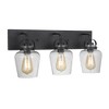 The functional minimalism of the Trystan collection with it's eye-catching silhouettes and clear glass captured globes offers innovative lighting without overwhelming your decor. Clear Glass Shades (included) Requires 3 Medium base, 60 watt bulbs (n 1 Year Mounting Direction: Up/Down Shade Included: Yes Material: Glass, Finish Color: Flat Black, Width: 22", Height: 10", Length: 22", Depth: 7.5", Height From Outlet Box: 2.4", Backplate Width: 22", Backplate Length: 4.75", Number Of Bulbs: 3, Wattage: 60 Watts, Dimmable: No, Moisture Rating: Damp Rated