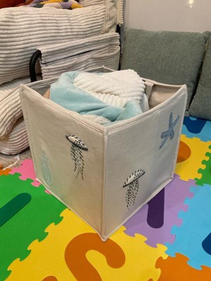 [This review was collected as part of a promotion.] The Cove Ocean Animal Nursery Storage Cube is a 14"x14"x14" organizer made of 100% cotton, with an embroidered marine design that combines octopus, starfish and fish. It is foldable, sturdy and easy to clean, ideal for storing toys, clothes or blankets while bringing a tender and elegant touch to the baby's room.