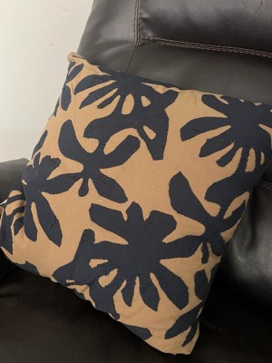 Product Name: Indigo Reef 18" x 18" Throw Pillow, Indigo Coral-Inspired Appliqué on Khaki Cotton