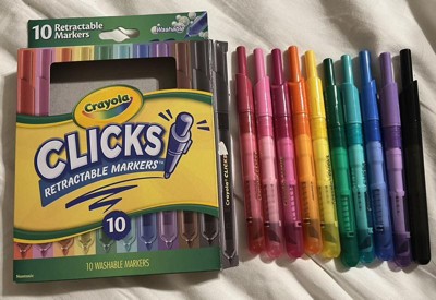 - CRAYOLA RETRACTABLE MARKERS: Includes 10 Retractable Crayola Clicks Markers in assorted colors and washable formula. (Additional colors sold seperately).