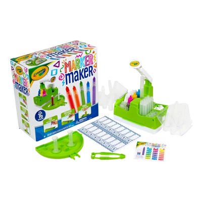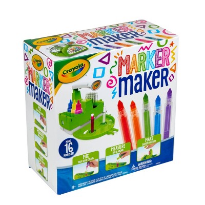 Make your own Crayola Markers! With the Crayola Marker Maker kids can make real markers for home arts and crafts or school projects. The included step-by-step instructions make it fun and easy to craft 16 customized markers. Kids can use the included inks as they are, or mix them to create their own unique color blends. Features Marker Making Machine, 16 Makeable Markers, Customizable Marker Labels, Color Mixing Guide, Instruction Sheet, and Assorted Inks. Ink colors include Red, Yellow, White, and Black. Makes a great gift for girls and boys. Safe and nontoxic, ideal for children ages 8 and up.