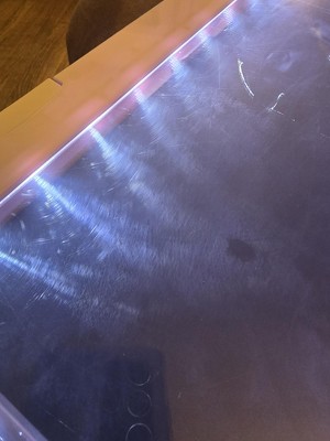 Thank you for your review regarding the Crayola Ultimate Light Board. We are sorry your product was not in peak creative condition. What may appear as scratches could be dust that settled onto the board. Try wiping the surface with a disinfectant wipe and then pick up the moisture and any remaining residue with a dry cloth. If that does not correct the issue, we want to hear from you! Please contact us at 1-800-CRAYOLA. Have a colorful day! - Chris, Colorful Care Team