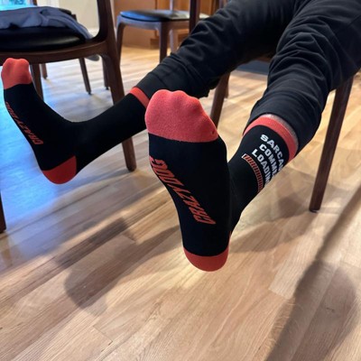 Versatile Style: These casual dress socks for men feature a sleek black design with contrasting red accents, making them suitable for both relaxed and professional settings while showcasing personality.
