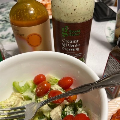 Add a flavorful kick to your homemade meals with this 11.8-Ounce Creamy Aji Verde Dressing from Good & Gather™. Made with jalapeno chiles, cilantro and a touch of lime, this creamy verde dressing features no artificial flavors, preservatives, synthetic colors or high fructose corn syrup. Perfect to serve over rice bowls with chicken or drizzle into a grilled chicken and avocado wrap, it comes in a 11.8-ounce container, making it easy to enjoy at home or at work.