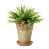 This terra-cotta cement planter with a saucer and distressed finish can add some rustic and natural charm to any space. This round cement planter has a saucer and a drainage hole that prevents overwatering and keeps the plants healthy. The planter has a distressed terra-cotta color that gives it a vintage and cozy look. The vase measures 7 inches in round, and 8.5 inches tall. The planter can hold a 5-inch pot of any succulents, herbs, flowers, or air plants. It can be placed on any desk, shelf, windowsill, or patio, and create a beautiful display of plants. This terra-cotta cement planter with a saucer and distressed finish is a versatile and attractive piece that can fit any style of home.