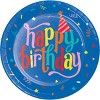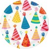 Set a cheerful and festive party table at your next birthday celebration with this Hats Off Birthday Hats Tableware Set! This kit comes with everything you need to serve a memorable meal for 8 guests with ease. You'll receive 9" round plates for your main course, 7" dessert plates, 5" cocktail napkins, 6.5" dinner napkins, and a tablecover measuring 54" x 96" to complete the look. It's the perfect kit for anyone who loves bright colors and good vibes. Hosting a fun birthday party has never been easier with this complete set!