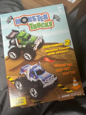 [This review was collected as part of a promotion.] My daughters were so excited about these monster trucks. They love anything and everything that has to do with trucks! They had such a great time putting stickers to customize their trucks, it made them more special and exciting for them. It was fun for me being able to watch them both playing together.