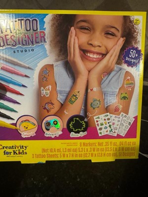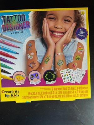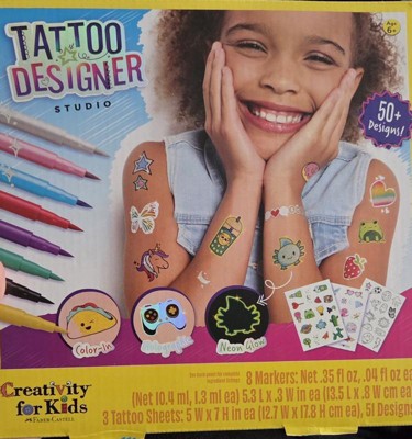 [This review was collected as part of a promotion.] Hello, friends & family. .I just wanted to let you know about Tattoo Designer Studio by Faber Castell. This was so much fun to play with the girls. We had fun laughing, giggling & making all sorts of weird tattoos. Having fun putting the tattoos on family and backpacks, too. They stay in place. Has 50 designs along with markers. They are temporary, so they do come off right away. No mess. I really like that.. It gives them good creativity and imagination. Please make sure you read all directions. Highly recommend.