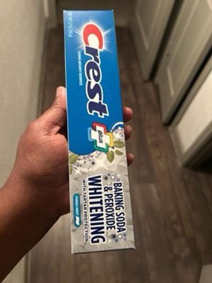 Crest Plus Baking Soda & Peroxide Toothpaste with Tartar Protection gives you a cavity treatment that helps take care of your mouth. Regular brushing can help protect your teeth and strengthen weak spots to help fight cavities. The formula contains baking soda and peroxide, and it whitens your teeth by removing surface stains. Plus, it fights tartar buildup, and it'll leave your breath feeling fresh.
