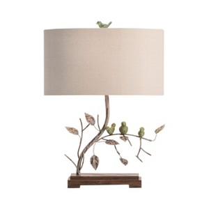 This character side lamp keeps your attention with the leaves and birds.