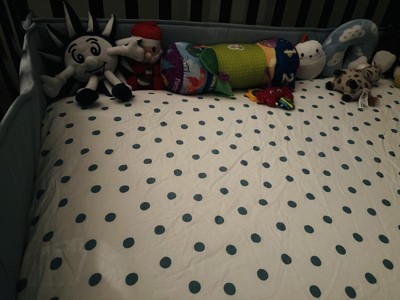 What an adorable bedding set! The colors coordinate and have simple enough patterns to fit many styles of nurseries! The double crib sheets are great and are very soft, and wash well, too. The comforter is really nice for when your baby becomes a toddler- especially if you have a convertible crib and want to turn it into a “big-kid bed”- you can just add the comforter to the existing set and it works perfectly! This would be a great gift for any baby shower!