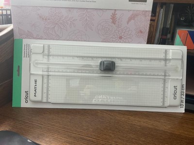It's easy as ever to cut straight lines with the 13 in (33 cm) Cricut® Portable Trimmer. The unique, easy-glide blade system leaves preceise, stright cuts. An ergonomic, custom-fit handle provides a smooth grip cut after cut. The dual-hinged rail makes it a cinch to load and measure materials, and cut from both sides. It features measuring marks and rulers in both inches and centimeters, 1/4 in (0.3 cm) grid marks, and a 16 in (40 cm) swing-out arm help you accurately measure every cut. A convenient storage compartment on the underside keeps your replacement blade handy.