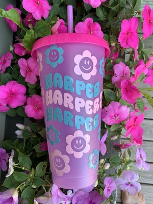The Cricut cold activated color changing vinyl was so easy to cut, weed and apply. Made an adorable cup for a little girl’s birthday.