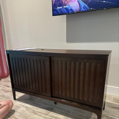 Crosley 54" Asher Sideboard Matte Black: Mid-Century Buffet Cabinet with Adjustable Shelves, Cable Management