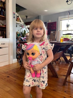 [This review was collected as part of a promotion.] My daughter loves playing with this doll! Cry babies are her favorite to play with as they are interactive and act like a real baby. I love when the pacifier is pulled, real tears start and the eyes light up.