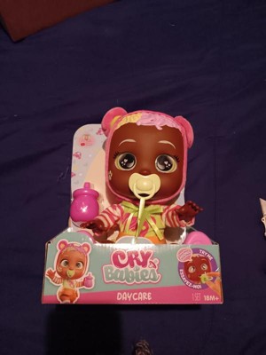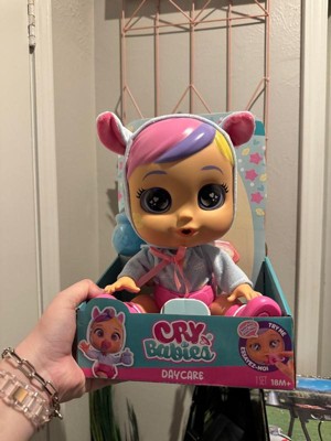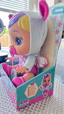 [This review was collected as part of a promotion.] I received the Cry Babies Day Care Jenna doll by ICM toys as a gift from the brand and Influenster in exchange for honest feedback. We love the cry babies show so my daughter was very excited when I gave her Jenna . She has big light up eyes, a removable diaper and comes with a bottle and binky. If you pull down her hood there's a piece of her head that removes and there's a small hole to fill up with water. When Jenna cries her eyes light up and tears stream down her face. They come out just as real tears would and my daughter absolutely loved it! To calm Jenna down you can stick her binky in her mouth or her bottle and she makes a suckling sound and calms down. The only issue we ran into is how hard it is to get the bottle or binky in the correct way making it kind of tough for my toddler to do. It's a very fun doll my daughter loves cheering up the baby and it's adorable to watch !