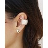 the coolest ear cuff. so easy to wear. I slip mine on from the top of my ear and when it gets to the middle part I squeeze it a little tighter to make sure its on, and then I go. wear with your hair up or tucked behind your ear. adds extra effortless cool girl vibes to any outfit.