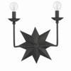 Bring stargazing indoors with the conversation starters of the Astro collection. A little bit cowboy, a little bit Olde World, and a little bit modern, the Astro collection marries hallmarks of each with whimsy and out of this world styling allowing them to work with a variety of decors. Perfect for adding a little rustic edge to your decor. Astro collection features a versatile farmhouse / rustic design. / A relaxed blend of rustic charm and modern comfort, featuring natural textures, neutral tones, and vintage-inspired accents. / Convertible; can be installed as a wall mount or ceiling mount. / Black metal finish, perfect for farmhouse & rustic settings. / 13"W x 15.25"H x 6"D / 2 light 60- watt, E12 Candelabra base / Steel / Authorized for use in dry interior locations. Meets United States UL Underwriters Laboratories Product Safety Standards. / This star inspired Astro collection is fun and whimsical.. ,