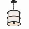 Bring style and substance to your favorite indoor space with Brian Patrick Flynn's Hulton Collection. Inspired by the shape and scale of classic drum pendants, the Hulton Collection adds a unique geometric twist to the category by incorporating a shade-less black metal drum form around the perimeter of the inner white silk drum shade. With its strong sculptural qualities and bold graphic lines, the Hulton Collection is the perfect statement piece for any room. Hulton collection features a versatile modern / contemporary design. / A balanced blend of traditional and contemporary elements, featuring clean lines, neutral finishes, and subtle detailing, offering versatile designs that complement a variety of interiors. / The vertical lines of the outer cage intersect with the horizontal lines of the inner cage, creating a nice design flare. / Matte Black finishes are everywhere in contemporary design. This velvety muted finish makes a modern statement and can create a beautiful contrast w