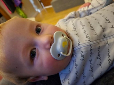 [This review was collected as part of a promotion.] My baby has used this pacifier since she was 11 months old we have been using it for 6 months now. This is the only pacifier she has ever taken to and enjoyed. We love the symmetrical design of the pacifier and how durable the nipple is. The pacifier has been gentle on her skin and has proved to be comfortable. We loved how these were more neutral colors and simple cute designs.