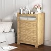 Transform your home organization with this versatile 4-drawer dresser, designed to efficiently adapt to any space—from bedrooms to home offices. Expertly crafted from scratch-resistant boards with sleek metal handles, this durable dresser is easy to maintain with just a quick wipe-down, ensuring it always looks pristine. Its four spacious drawers, each featuring smooth ball-bearing slides, make effortless work of storing everything from kitchen essentials and to clothing, keeping your spaces clutter-free and organized. Perfect for narrow areas, this practical piece maximizes storage without taking up excess room, making it ideal for kitchens, entryways, or living rooms. The elegant woven wood top, stylish gold handles, and minimalist wood base add a touch of sophistication, while the transparent acrylic door allows for convenient viewing and protection of your cherished collections, blending functionality with refined modern design.