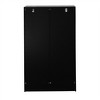 This multipurpose cabinet provides ample and versatile storage with two glass doors opening to adjustable shelves and two additional compartments, making it perfect for your living room, entryway, bedroom, dining room, condo, or office. The modern black design, featuring elegant handle-free glass doors, brings a touch of sophistication and fits seamlessly with a variety of interior styles. Built from high-quality hard wood, this cabinet is durable and stable, with shatter-resistant glass doors for added safety. Easy-to-follow assembly instructions ensure quick setup, while the low-maintenance surface allows for effortless cleaning, making it a practical and stylish addition to any space.