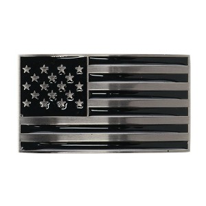This belt buckle features sharp silver on black tones. Show off your American pride with this American flag belt buckle. It fits belts up to 1.5" in width, making it the perfect addition to your belt strap collection. The sturdy metal loop and prong on the back will last you many wears. This belt buckle would make an amazing gift for that special someone in your life! Made of Metal