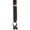 These are great dress suspenders to add to your outfit for any special occasion or just a night out on the town. The gold finish adjusters and leather button-ends give it a sophisticated and stylish look. The button-ends securely fasten to buttons put inside the waistline of your pants. Regular adjusts from 35-48 inches long and the x-long adjusts from 40-54 inches long. Made of Elastic